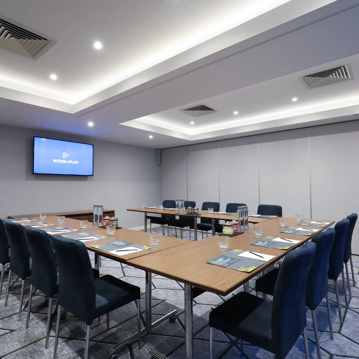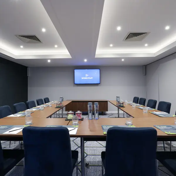 Theatre - 28 people | Boardroom - 16 people | U-shape - 14 people | Cabaret - 18 people